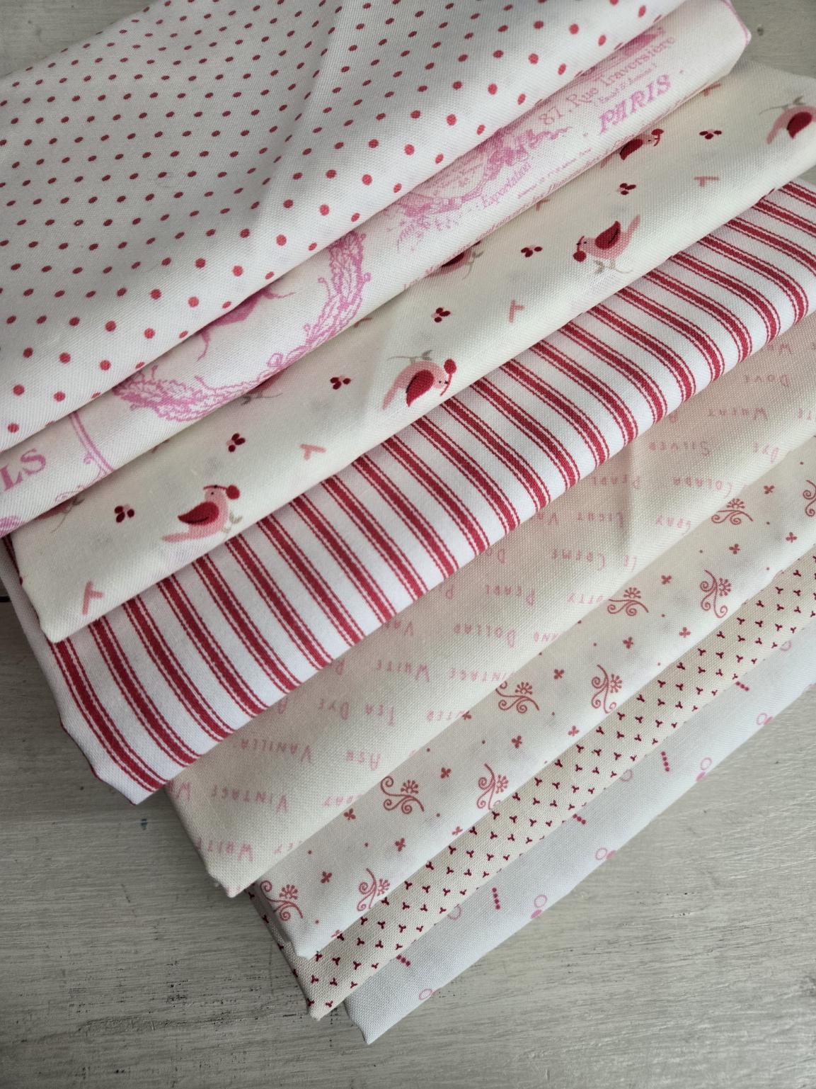 Lovely Low Volume Valentine...this collection of delightful red and pink soft prints on white, cream, tan, or beige is the perfect starter bundle for your next project.
