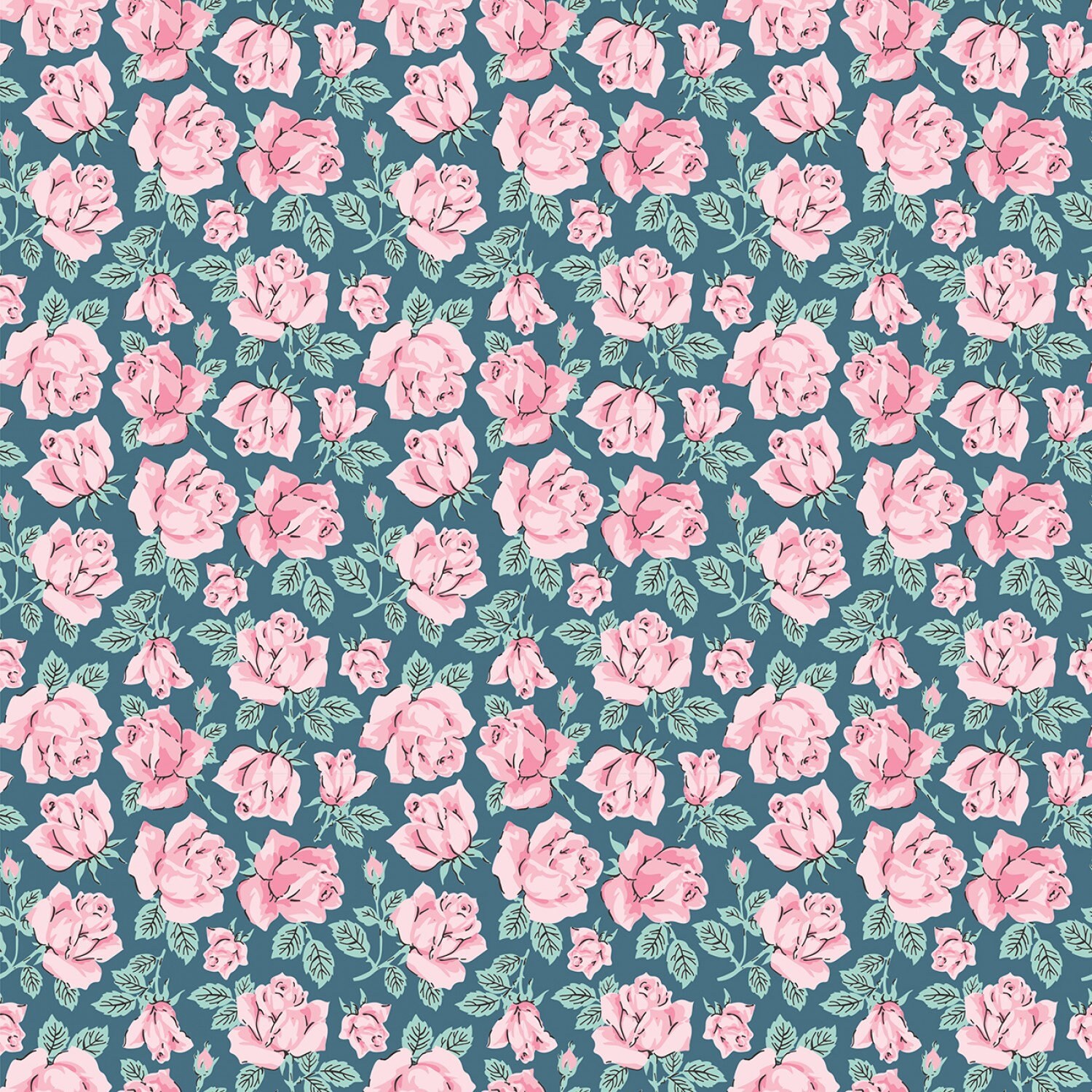 Delightful Department Store Carol's Roses Teal by Amy Jordan for Poppie Cotton, pastel print