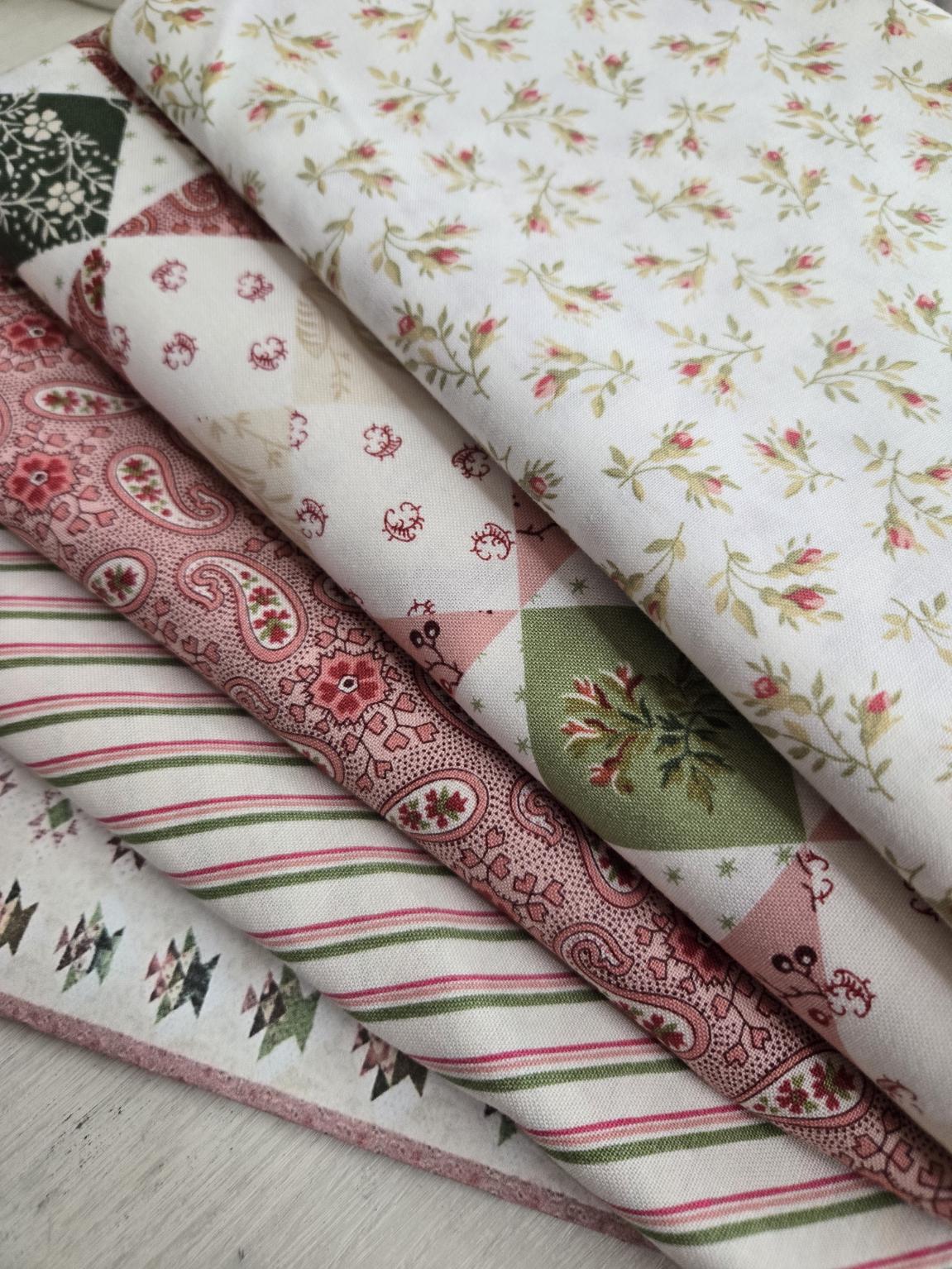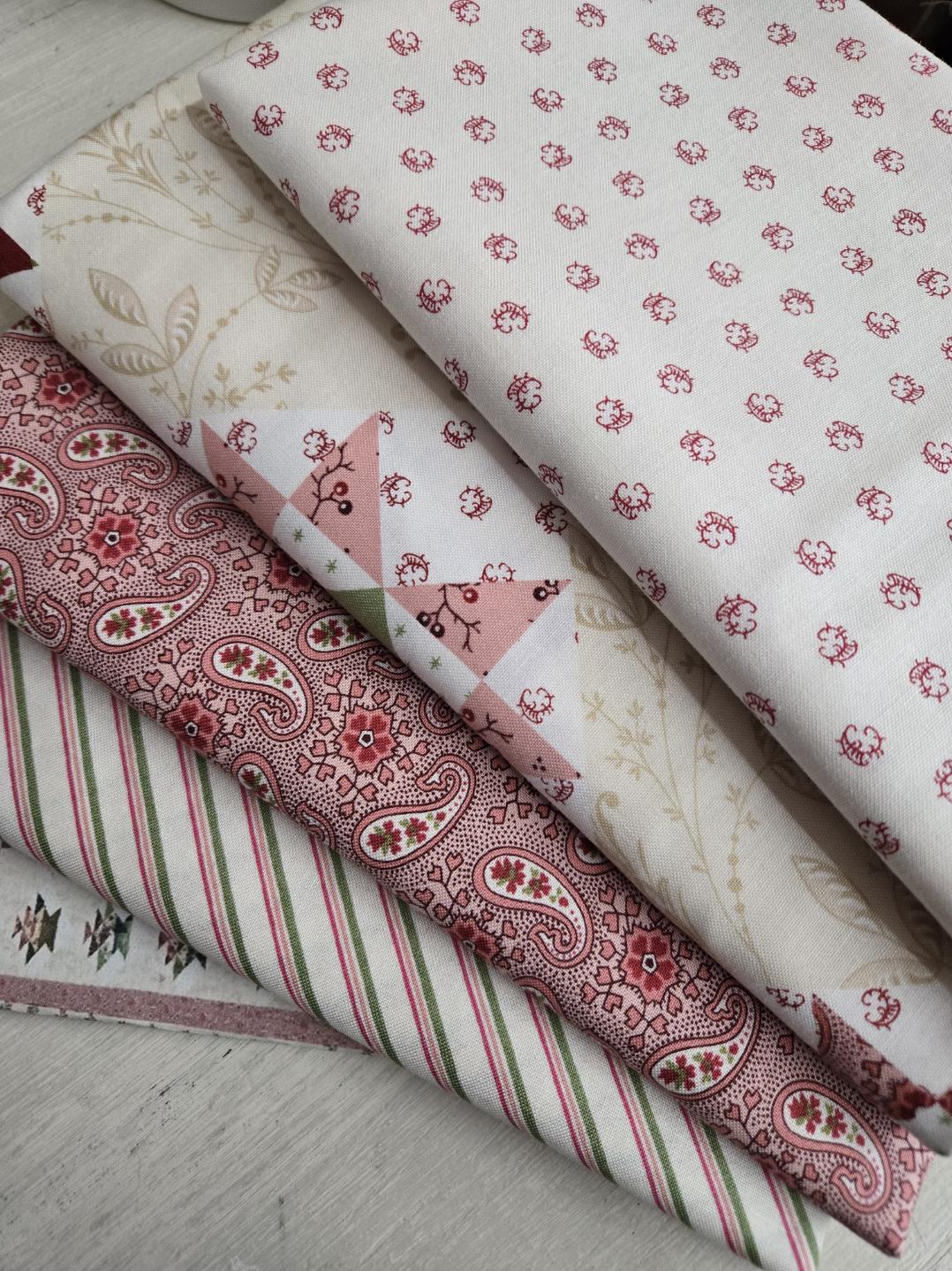 A cozy little throw...a perfect palette of red, pink, green, and cream. The center is a preprinted panel...making this a super quick, super easy project to whip up.