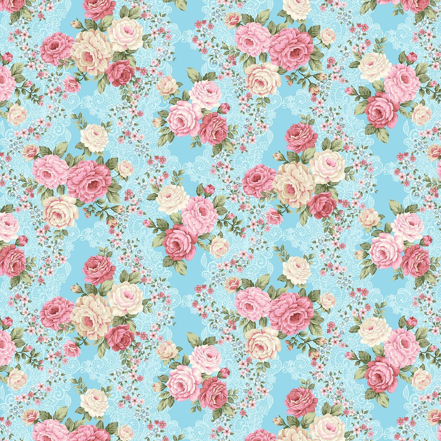 "My Victorian Garden is filled with exquisite, fragrant and enchanting roses, both large and small in scale. The hints of lace and romantic paisleys give this collection a sophisticated touch. The soft pinks, blues and greens offer a refreshing color palette that is reminiscent of springtime. A stroll through this collection will offer you a wide diversity of scale and color that is easily adaptable to use for a wide range of quilt patterns. Bring the feeling of a lush garden into your home any time of the year with My Victorian Garden."