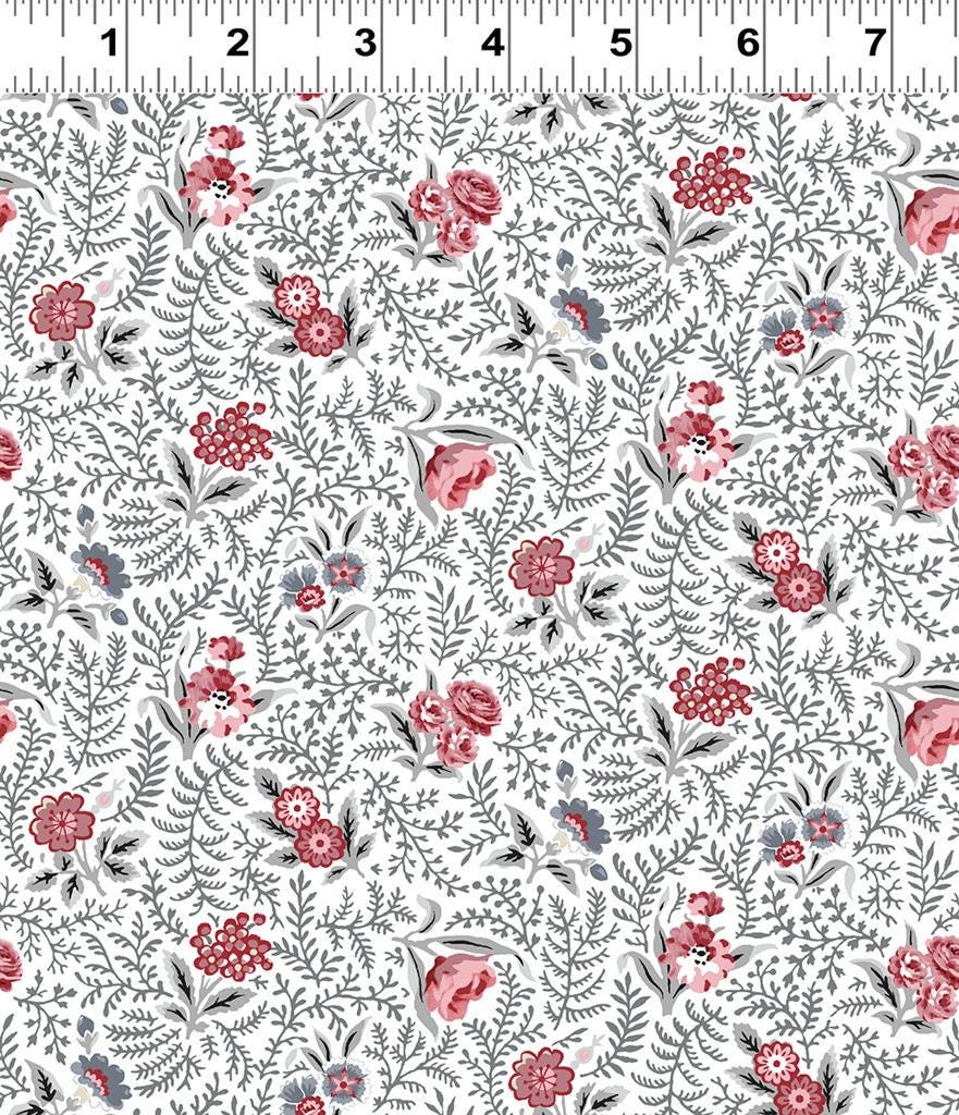 A romantic collection of soft grey, rosey red, charcoal, light pink, and soft white.