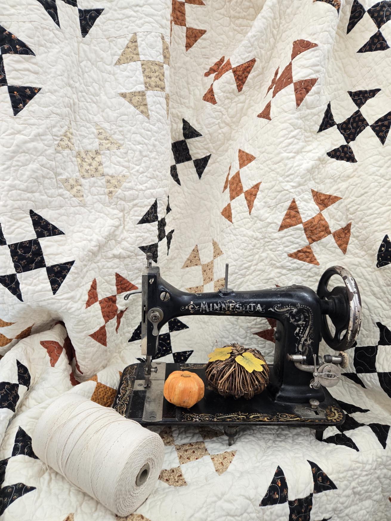 Peppercorn Hollow quilt measures 84 x 96 inches.