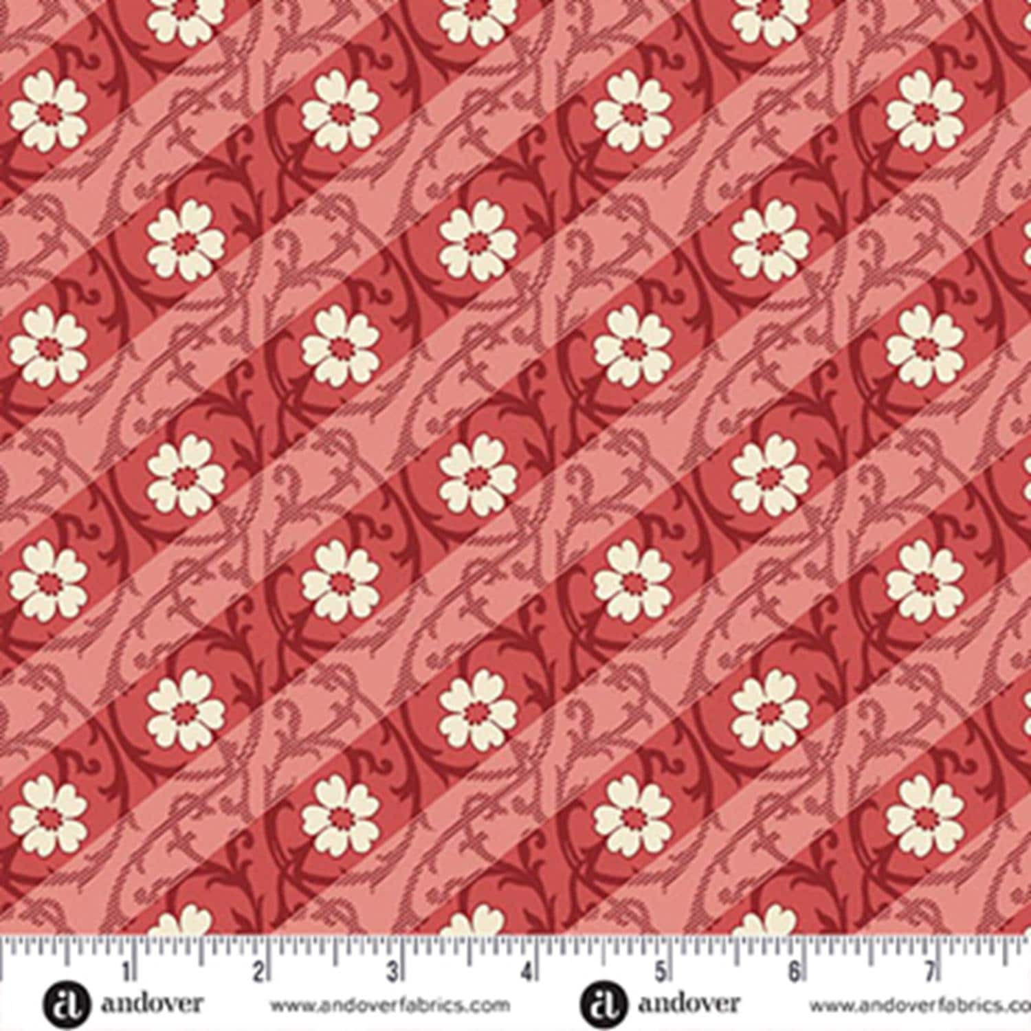 A delightful combination of prints and patterns in shades of navy, cherry ice cream, sun kissed, red roof, and splash.