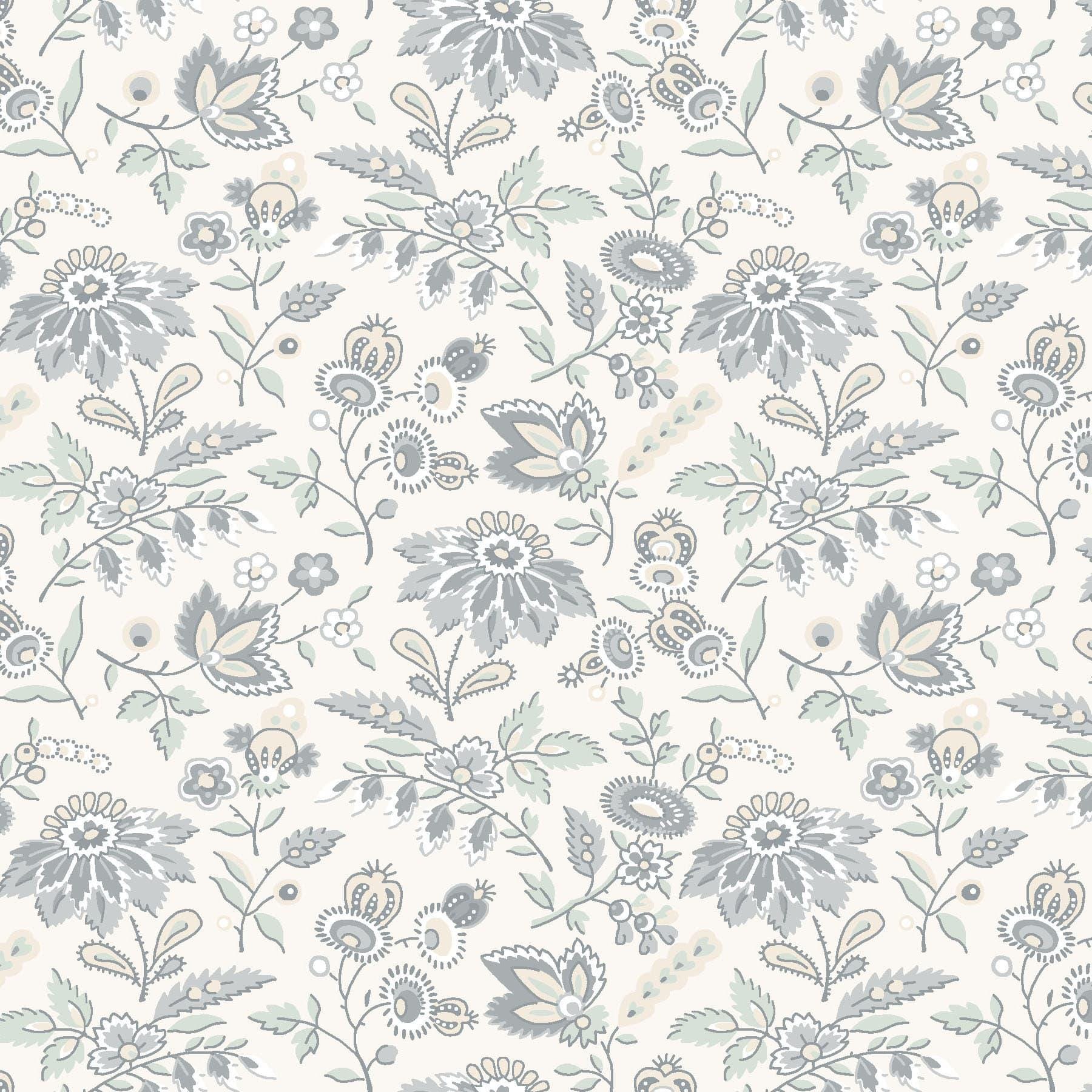 "Daybreak features intricate paisley patterns in a serene blend of soft cool grays and warm taupes, creating a delicate balance of warm and cool neutrals. The designs evoke the peaceful feeling of spending a quiet day in a shady spot with soft breezes and a good book—light, airy, and tranquil. The intricate patterns, combined with earthy soothing colors, bring a gentle elegance to any sewing project, whether for a lap quilt to relax under or a calming home accessory."