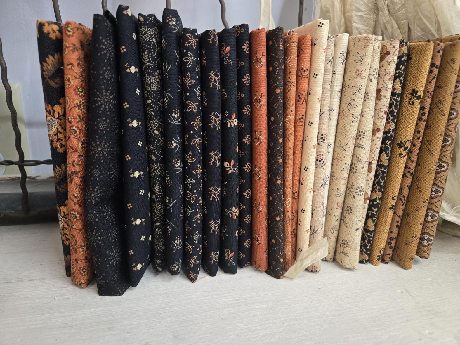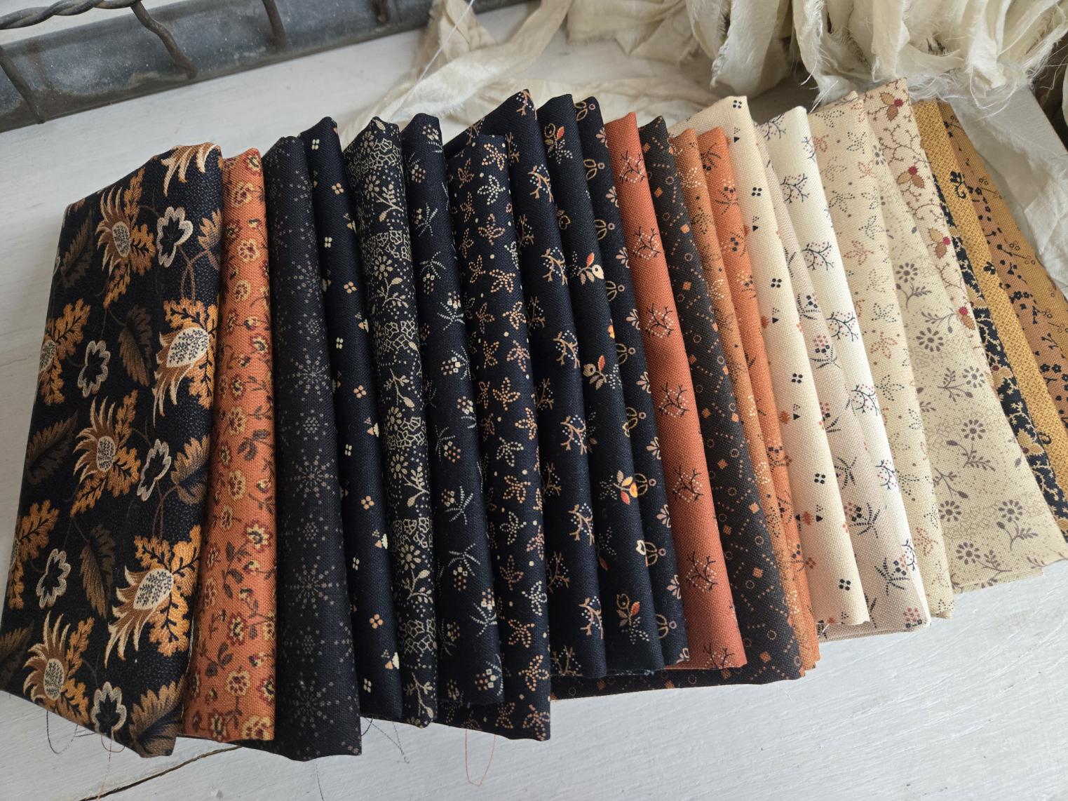 This listing is for 1 Cheddar and Butternut, Coal and Peppercorn...fat 8th bundle...Pam Buda...Marcus Fabrics.