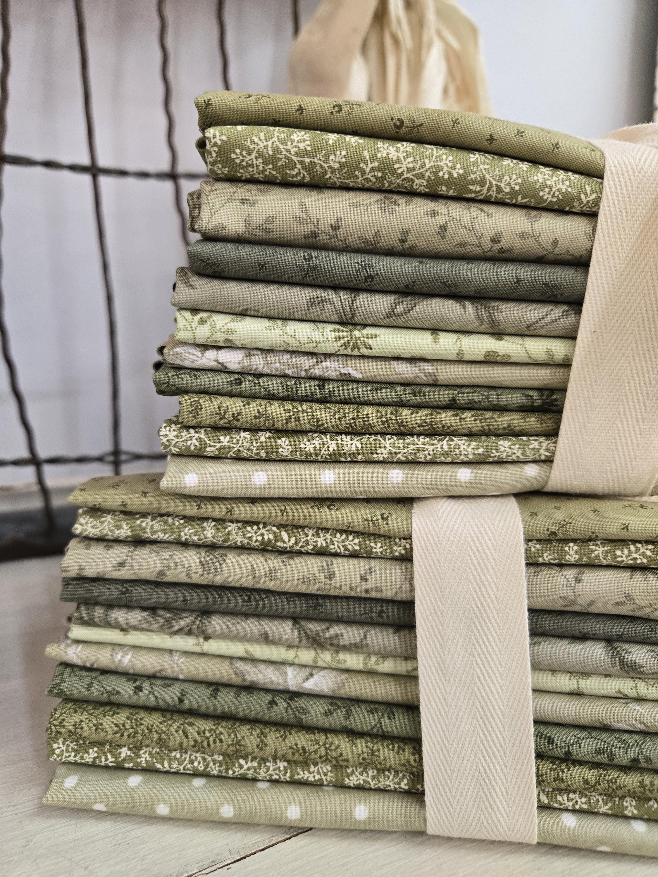 **Collection is a recoloring of VINTAGE LINENS. The Meadow Greens prints are NOT vintage. They are new and the bundle was cut directly from the bolt.**