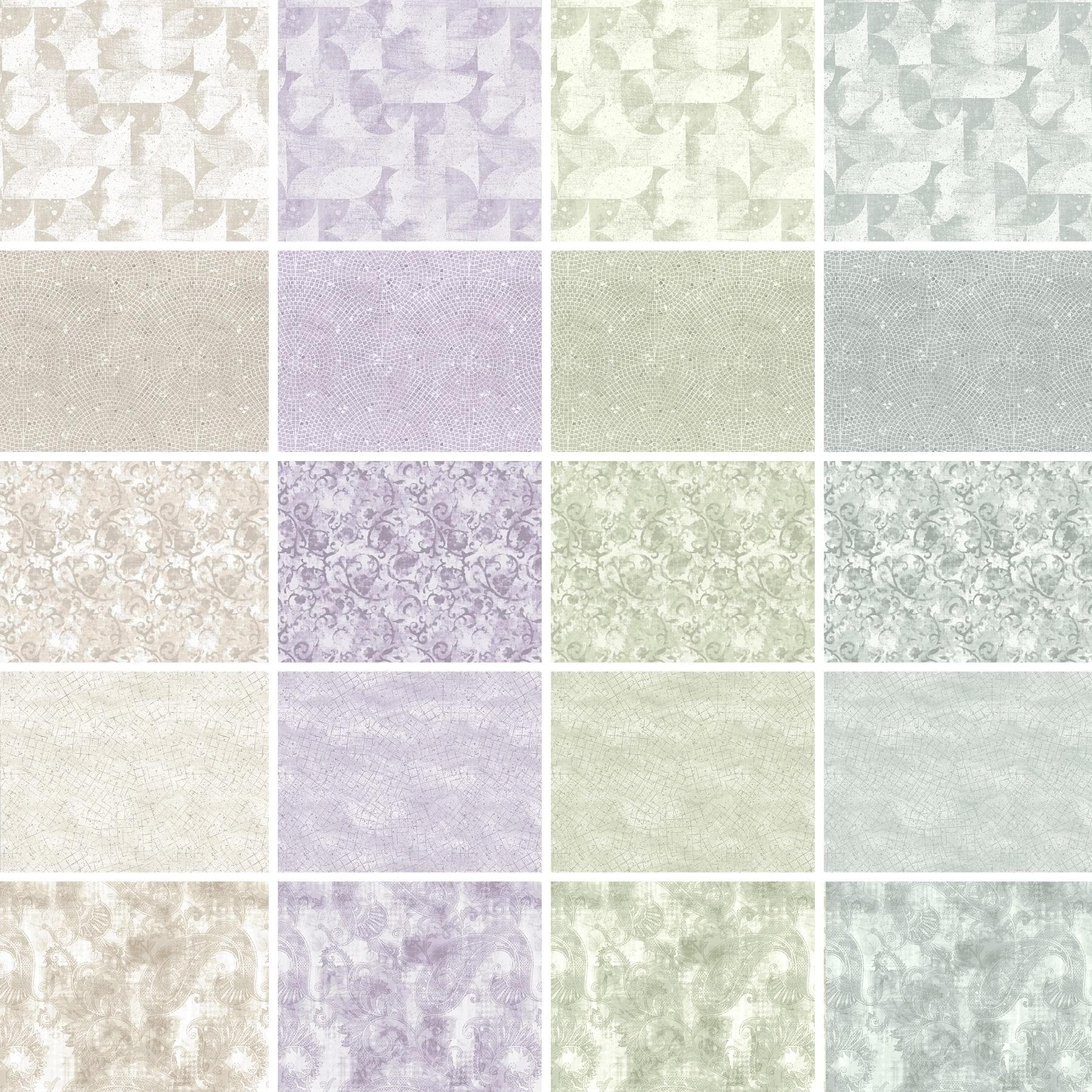 Give your home décor a makeover with Hushed Hues by Satin Moon Designs. Five elegant patterns are available in four colors that are perfect for so many projects. Choose from a sandy taupe or lush sage green for a down-to-earth aesthetic. The lavender and grey are perfect for a calming bedroom space. They are great to use as blenders to bring some texture easily into a quilt too. Whisper your excitement to all your friends as you sew with Hushed Hues.