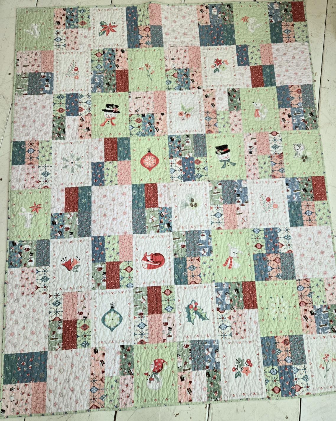 Christmas isn't complete without a quilt kit to work on between the festivities. This little project featuring Frost and Flurry panel rectangles and the coordinating prints is the perfect addition to your your holiday/winter decor. Winter Friends measures just 48 x 60 inches and is perfect for the littles to cozy up with for holiday movie night or as a seasonal floor quilt for the little baby needing a little tummy time.