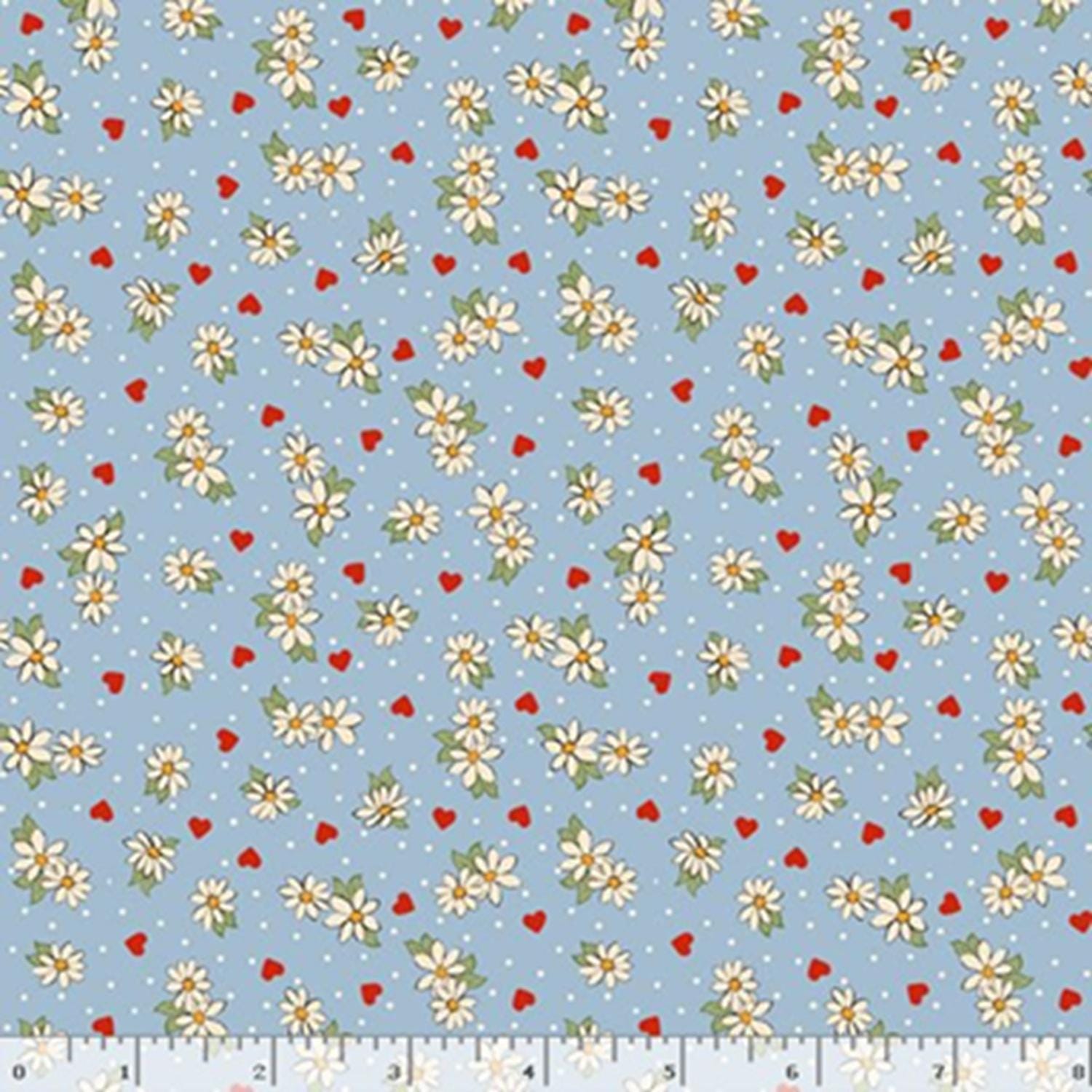 This listing is for Be My Valentine...R551643D blue...Flower 1...Mary Mulari...Marcus Fabrics.