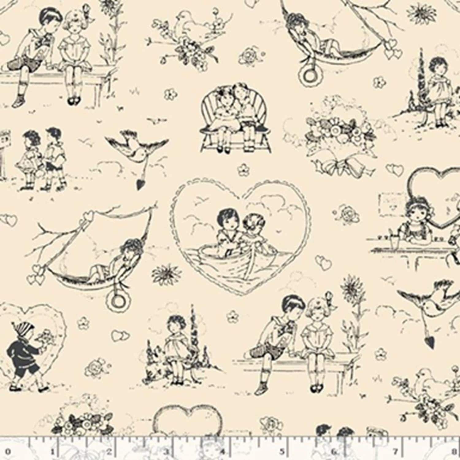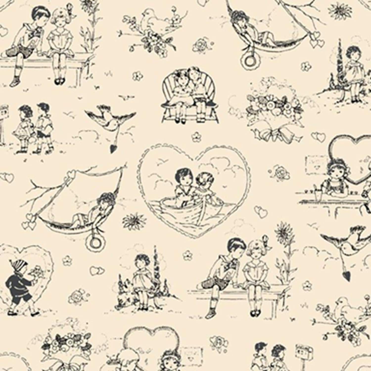 This listing is for Be My Valentine...R551642D Cream...Toile...Mary Mulari...Marcus Fabrics.