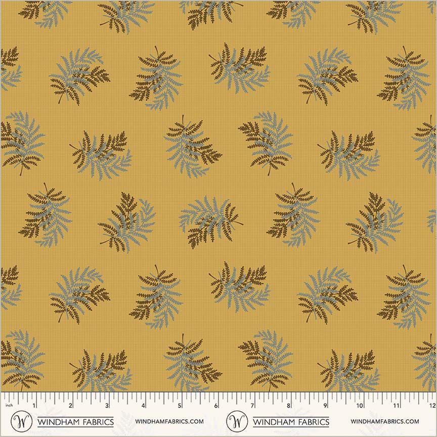 This listing is for 1 yard of Thimbleweed...54827-2 ochre...designer Julie Hendricksen...Windham Fabrics.