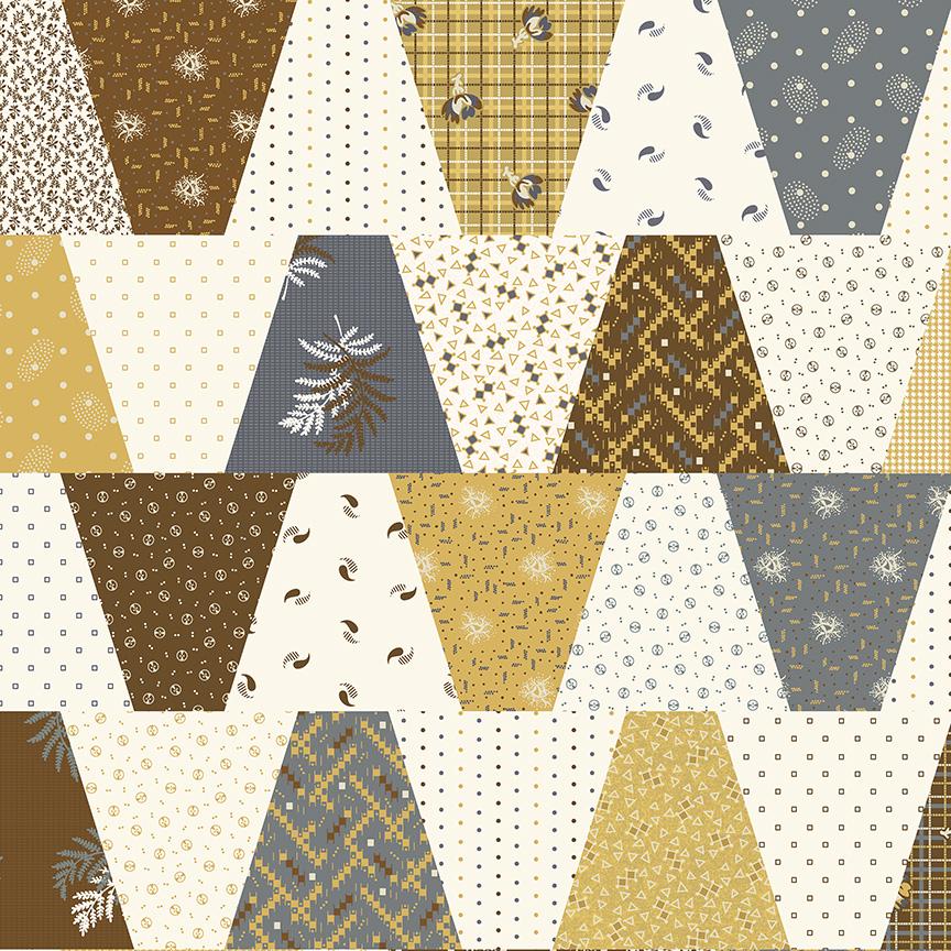 Inspiration for Thimbleweed came from a large assortment of vintage fabric that designer Julie Hendricksen has collected over the years. A favorite color combination of hers has always been Slate, cocoa and cream. With Thimbleweed, Julie has added ochre to her classic combination with great success. Small florals, geometric checks, dots, assorted shirtings and a stunning tumbler cheater cloth make for a classic collection.