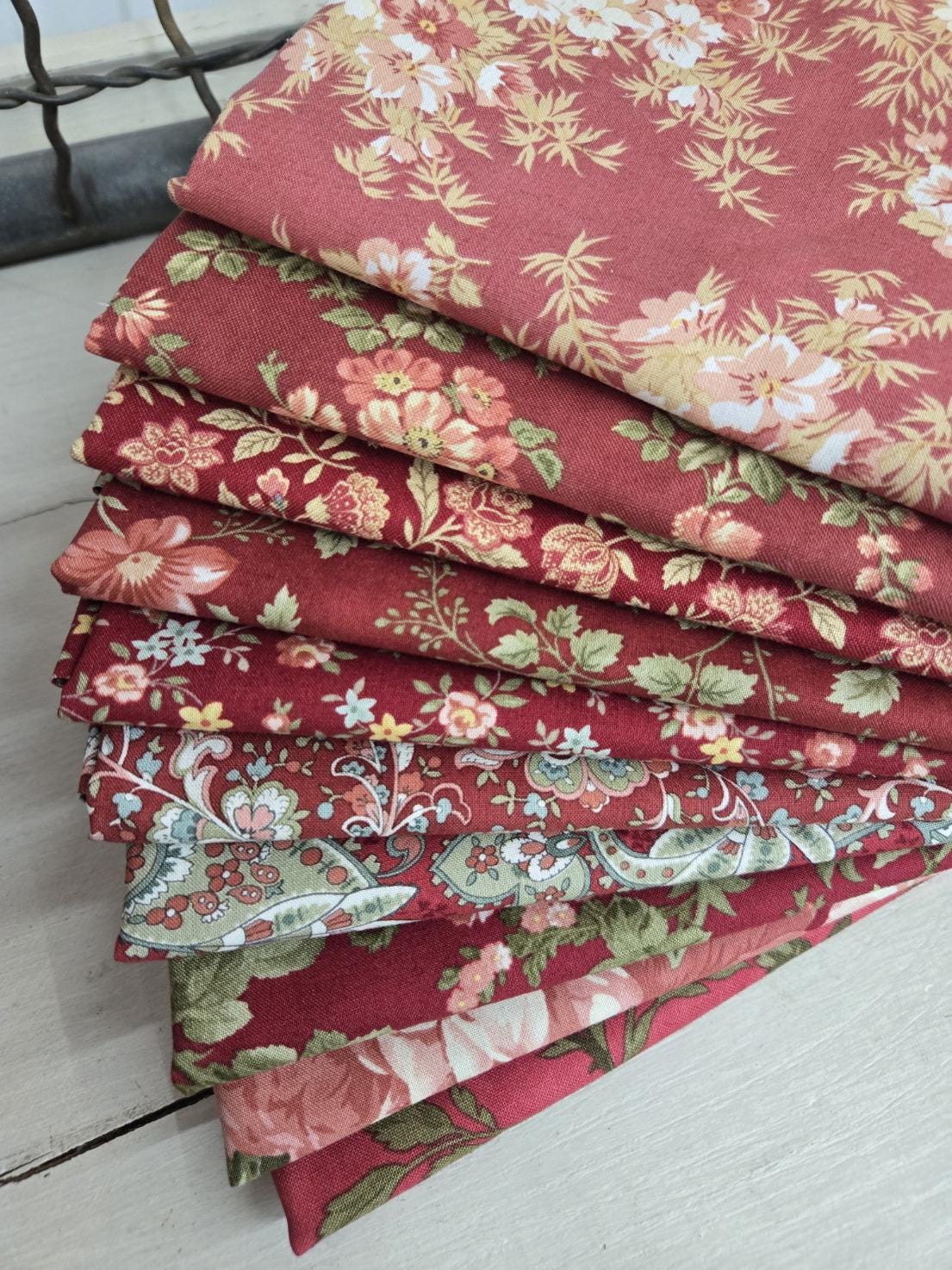 A favorite bundle of delightful red floral and paisley prints by 3 Sisters.