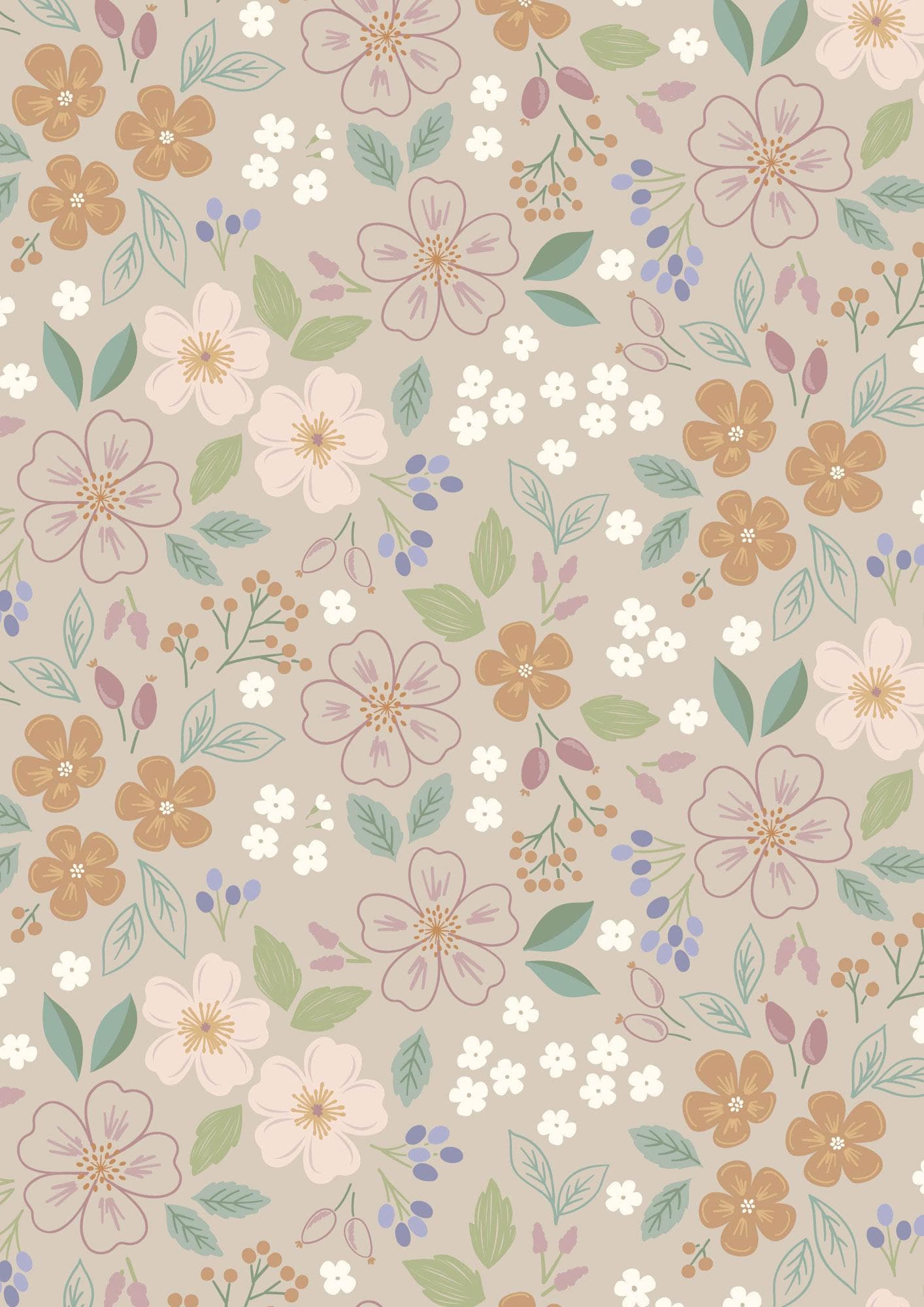 Calming and sweet, Cassandra's newest collection combines grey green, jade, and teal with shades of sienna, taupe, and cream. Pops of her signature lavender and purple keep it within her tried and true palette and make it that much easier to mix and match across her fabric ranges.