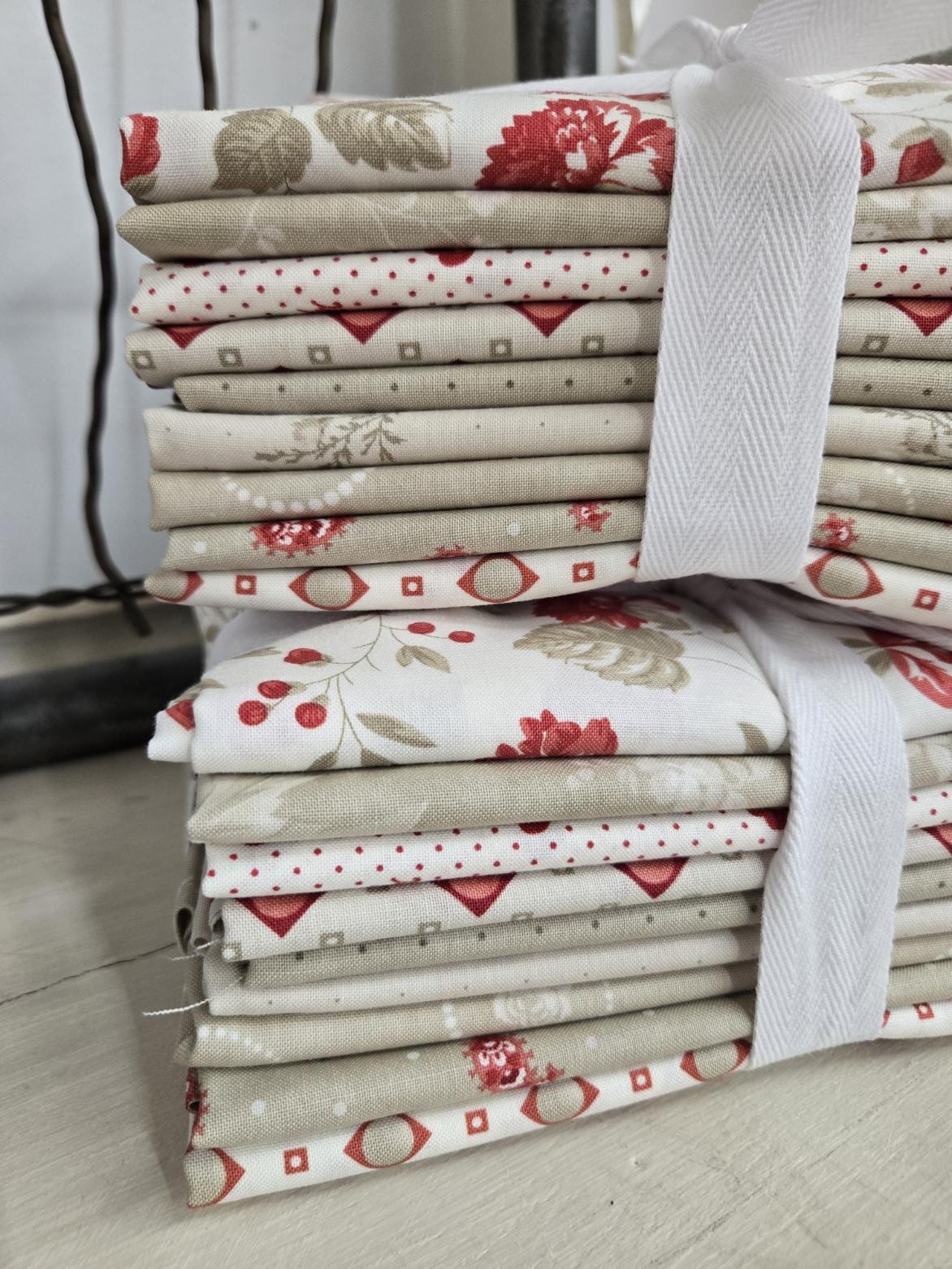 "There are certain places that evoke serenity. Birdsong on your morning walk, or a cup of tea in the still moments of a rainy afternoon. Ridgewood is that special time or place. Ease, comfort, and a comfy stitching place are what we all strive for. Ridgewood is cherry red and creamy neutrals. Your needle awaits."