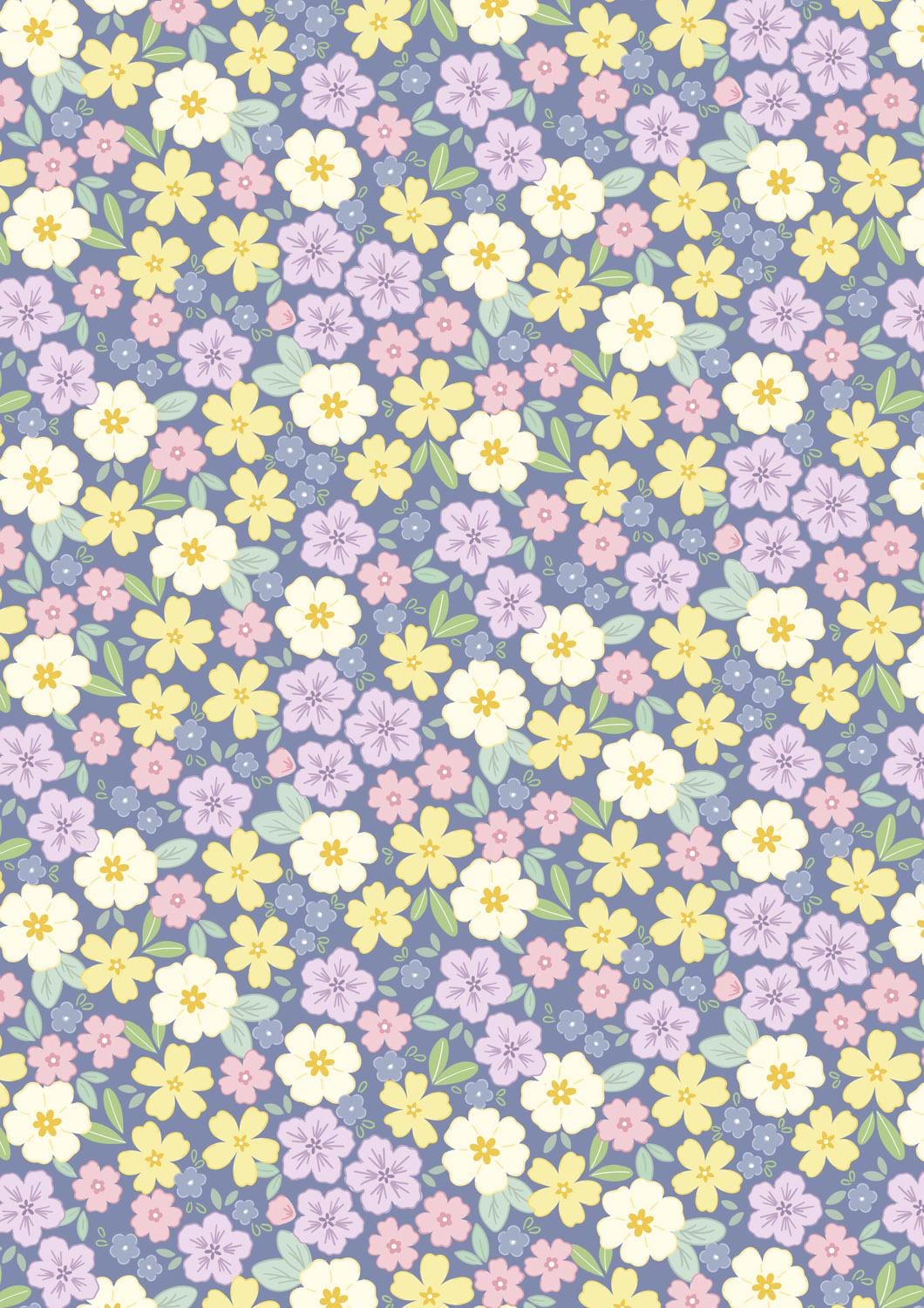 This listing is for 1 yard of Dear Spring...CC68.3...primrose prairie...dusky dark blue.