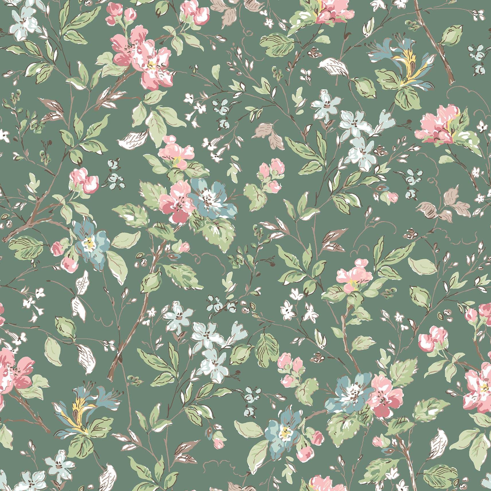 "A peaceful, overflowing porch garden inspires Terrace Blooms, a sweet, sun-drenched collection of florals and soft botanicals. Crisp, airy prints in shades of teal, rose, mint green, and cocoa brown conjure fragrant vines, scattered petals, and warm stone paths kissed by light, adding serene, nature-inspired elegance to any project."