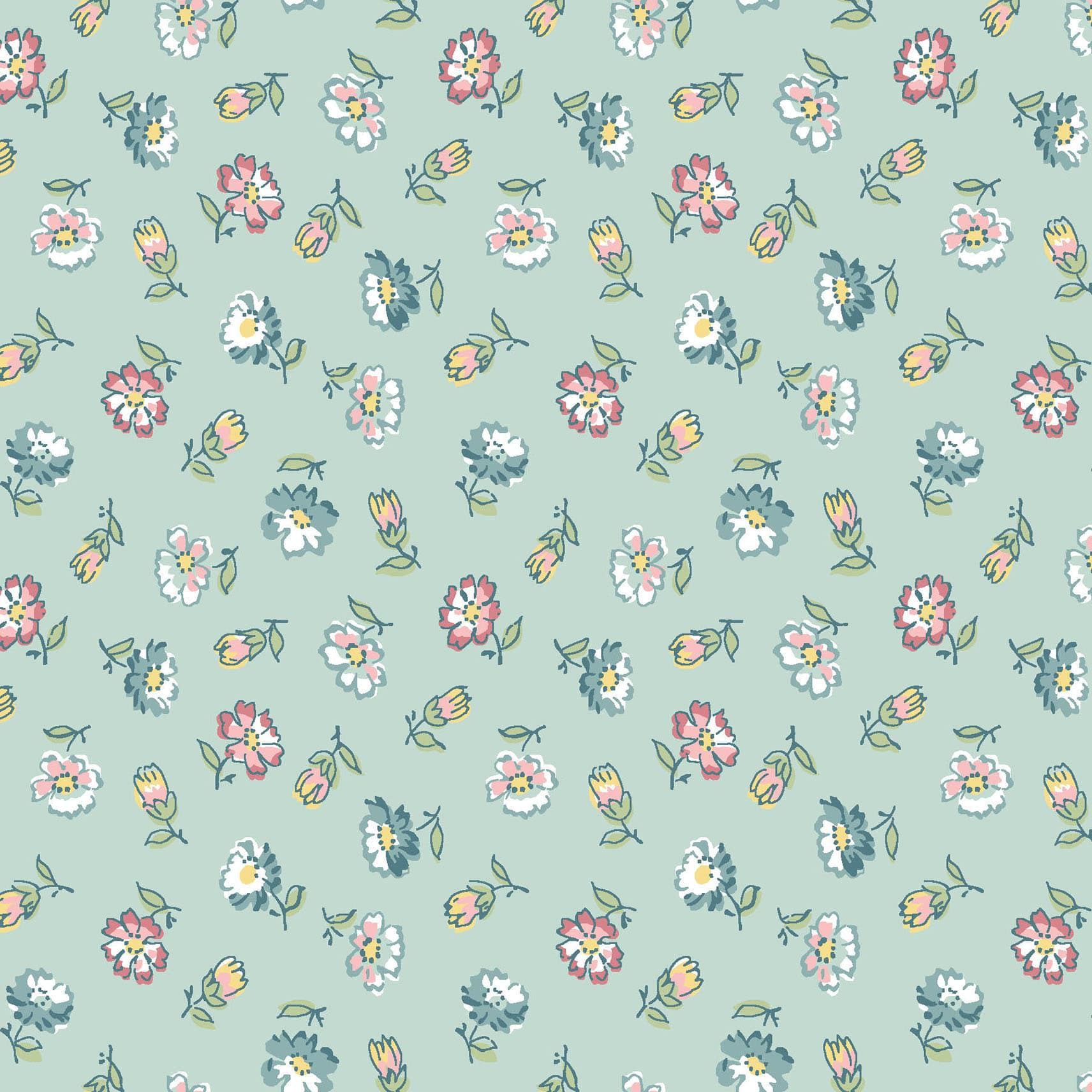 "A peaceful, overflowing porch garden inspires Terrace Blooms, a sweet, sun-drenched collection of florals and soft botanicals. Crisp, airy prints in shades of teal, rose, mint green, and cocoa brown conjure fragrant vines, scattered petals, and warm stone paths kissed by light, adding serene, nature-inspired elegance to any project."