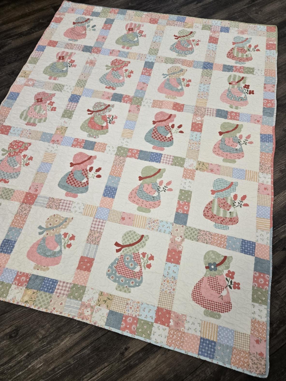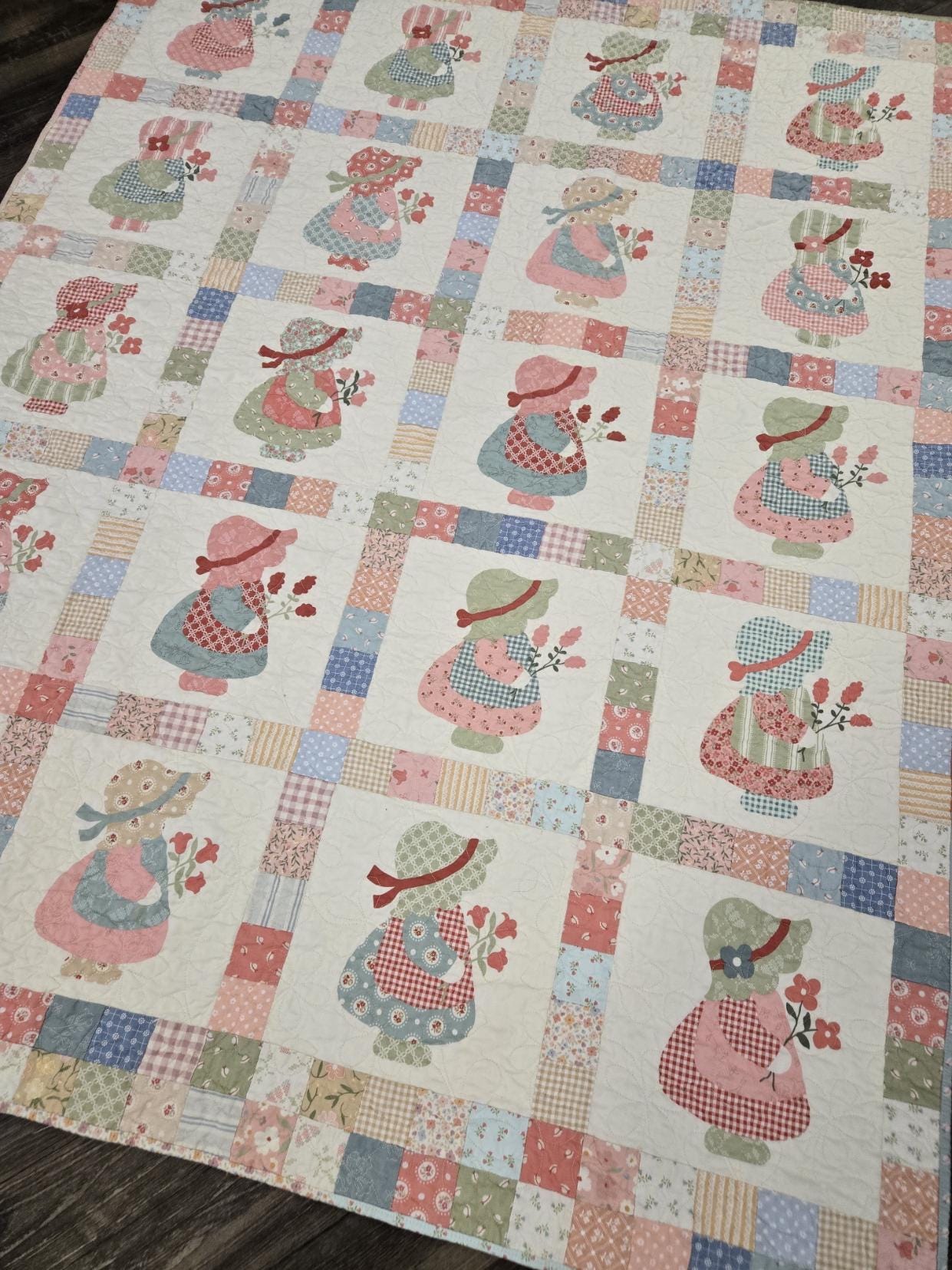 This listing is for the Penny Q. quilt KIT featuring the Sunbonnet PANEL.