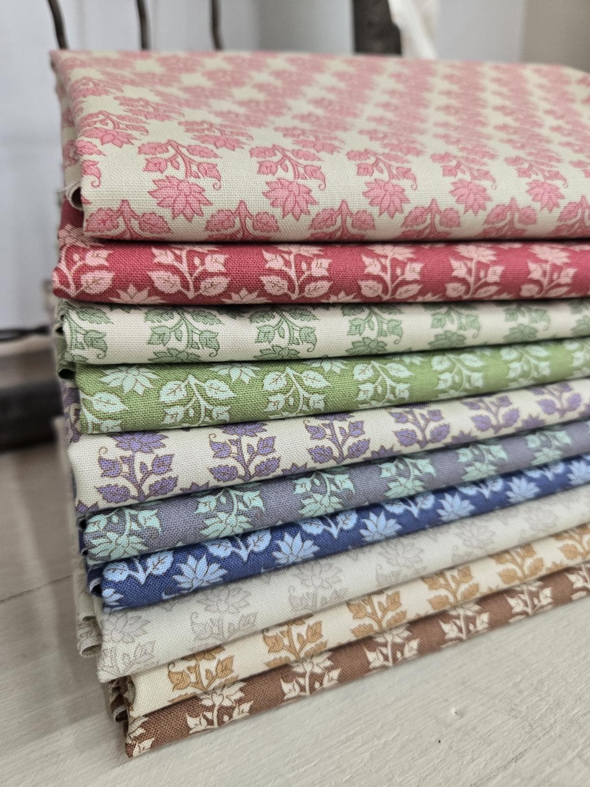 Other fabrics from this and coordinating collections are available along with precuts including charms, strip rolls, and fat quarters and fat 8ths, along with kits and coordinating books.