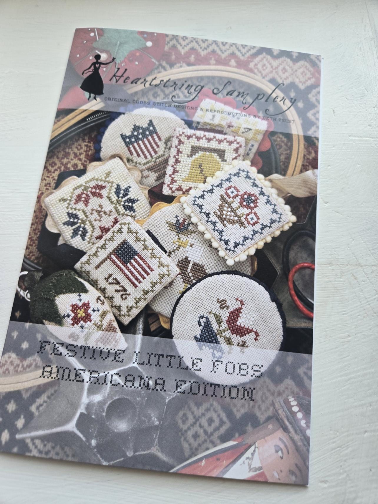 This listing is for the Festive Little Fobs: Americana Edition cross stitch chart set.