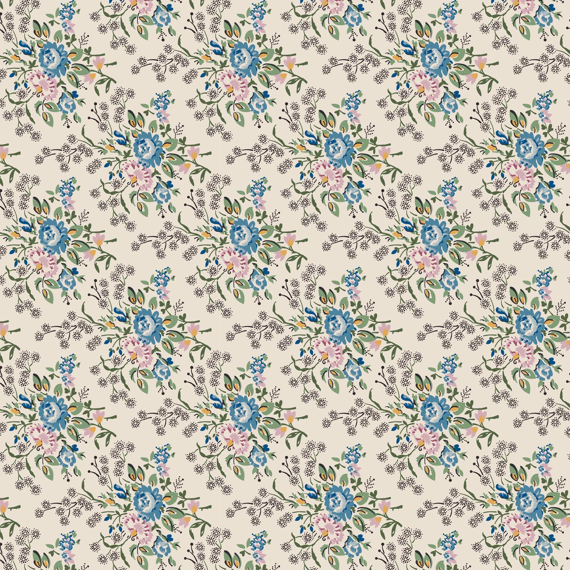 This listing is for 1 yard of Heritage Garden...DV7503...Willow Breeze Blue...Emma Newman of Gathering Thread...Devonstone Collection..