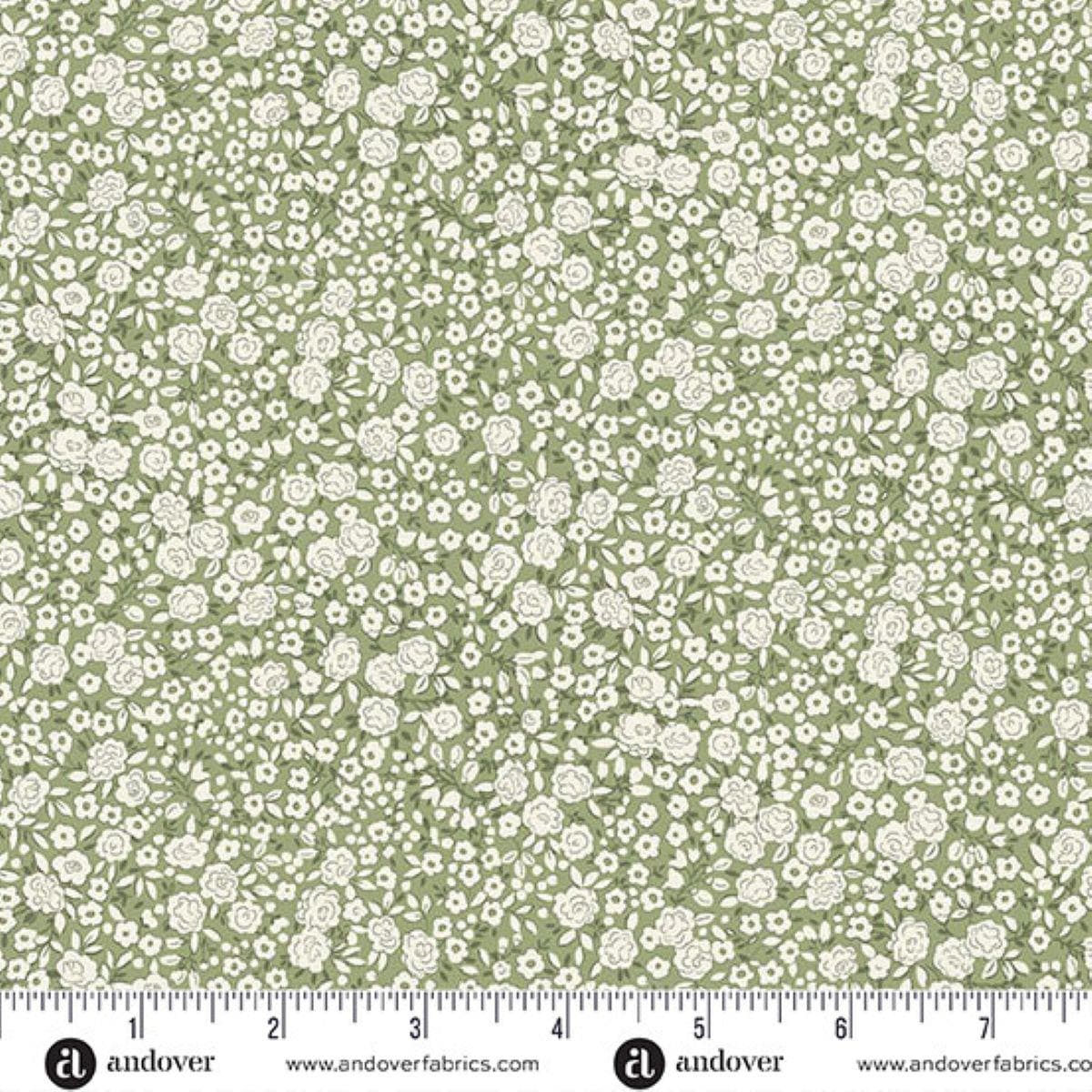 This listing is for Petite Fleur...MU-182-G...Blossom Green...Makower UK.