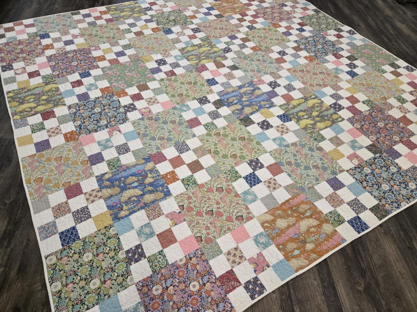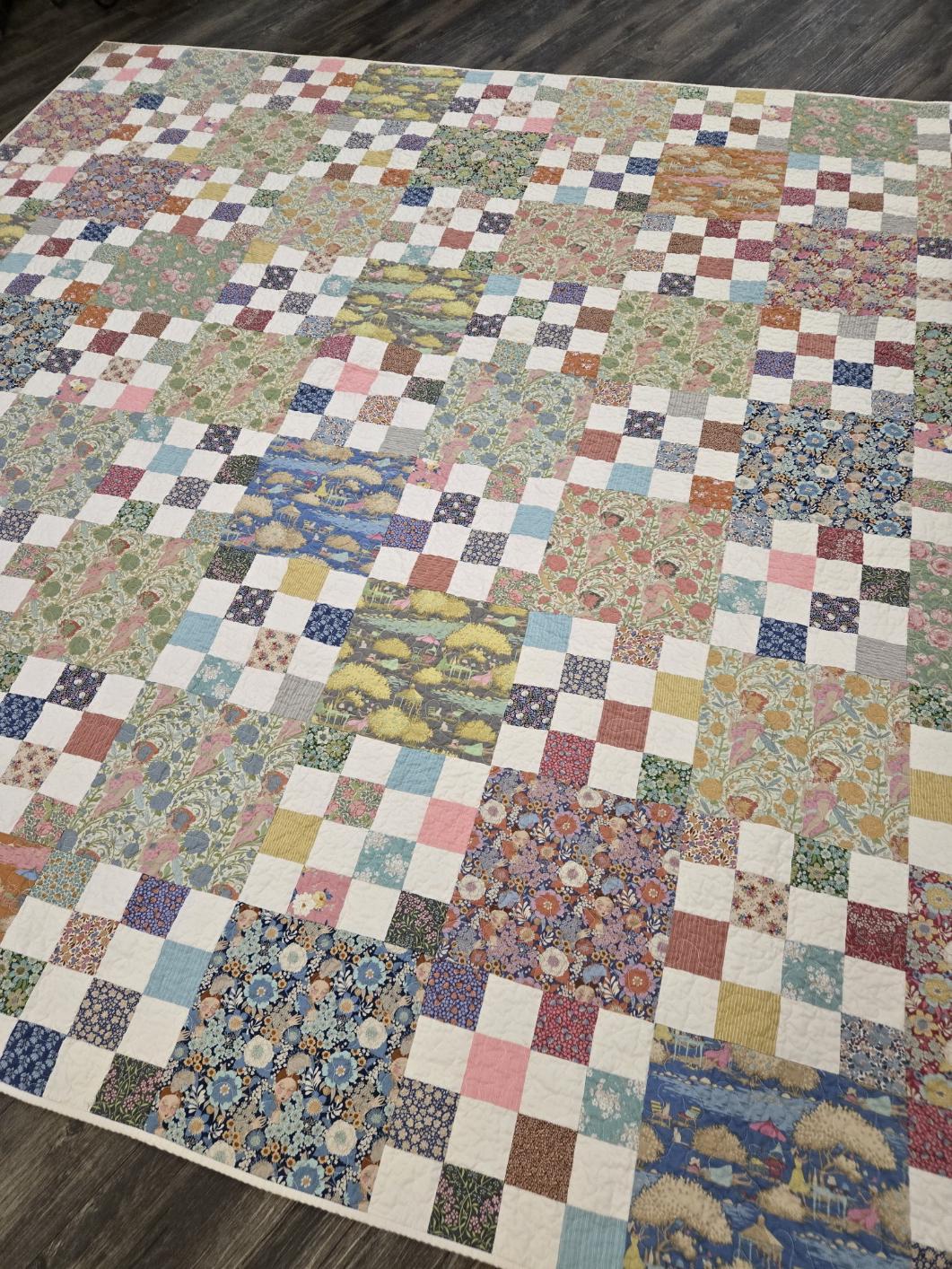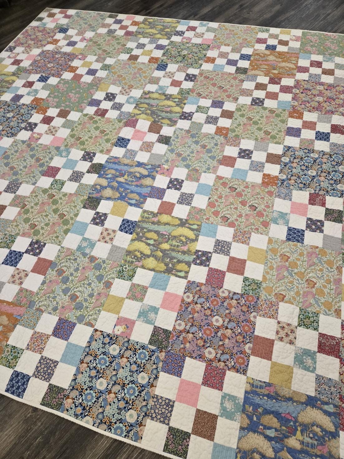 A cozy beginner level quilt featuring a fun mixture of Tilda prints. We opted for Tilda people prints for the large squares and basic white and scrappy checkerboard blocks. A perfect project to showcase all your favorite Tilda prints.